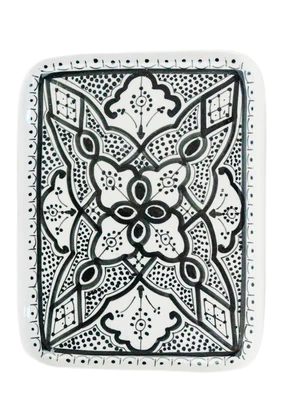 These trays are perfect for any occasion! Hand painted porcelain, these durable, functional trays will be a staple for your tabletop for years to come. The unique Moroccan design will let your guests know that you made the extra effort to create a tabletop that is extraordinary.