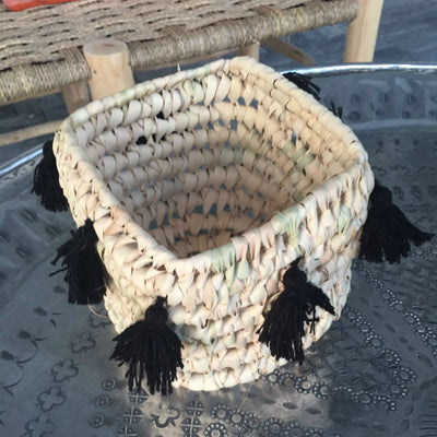 This cute little basket is hand-woven by local artisans and the tassels are each hand tied and applied by a women's cooperative in Marrakesh. Perfect in an entrance hall to wrangle all your keys, on the tabletop to serve cracker or as a lovely boho planter!