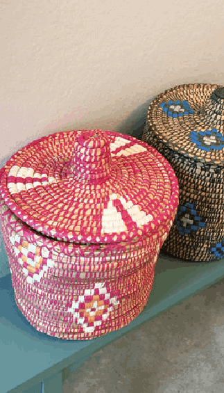 Each basket is a one-of-a-kind creation, due to the handmade nature of these baskets there may be discoloration or small irregularities but this is part of the charm!