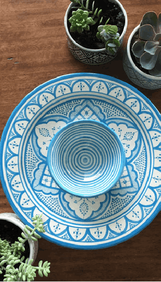 Handmade in Safi, Morocco. Dishwasher and microwave safe. All of our Moroccan ceramics are of the highest quality available ensuring you will be enjoying them for years to come.