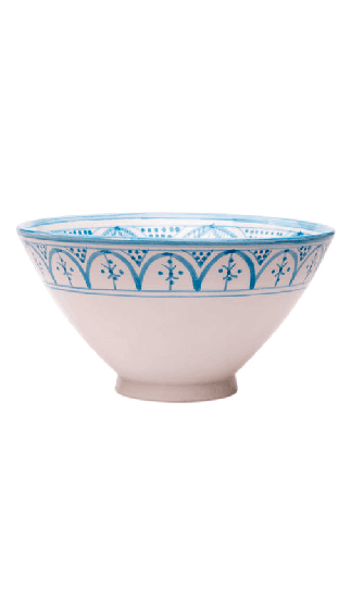 Hand-painted by artisans in Safi, Morocco, this functional piece of art is beautiful with fruit on your counter, the perfect vessel to serve your salad or as a simple yet elegant center piece on your dining table.