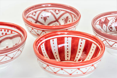set of 4 beautifully hand-painted tapas bowls available in several different color ways so you can mix and match them to compliment your très stylish happy hour...
