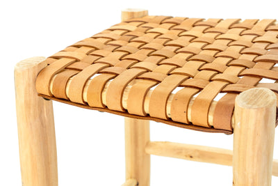 We re-designed this traditional Moroccan piece of furniture making it higher and wider to create a super comfortable stool... Made from Eucalyptus wood and leather, we think they are also a great parking spot for your handbag in an entrance hall, a plant or as a way to elevate a tray off the floor and create a small side table.