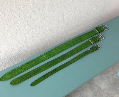 Size: approx. 40-47 cm (15.5"-18.5"), 5 holes - 2 cm (3/4" apart, total 55 cm x 3 cm (21 3/4 x 1 1/4"). Handmade in leather.