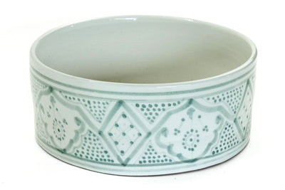 Handmade in porcelain and painted in Marrakesh, Morocco. Dishwasher safe.
