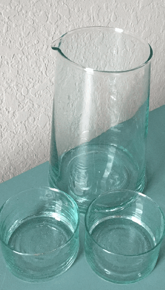 This gorgeous set of 6 glasses is hand blown from recycled glass in a factory in Marrakesh. These glasses have a great hand and a modern shape with an old world touch because they are each one of a kind and made by a person. A person you are supporting with your purchase of these sustainably produced authentic pieces.