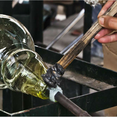 Each glass is hand blown and comes with little bubbles of air and imperfections which make each piece one of a kind.