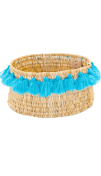 SEVERINE basket with tassels- small TURQUOISE SEVERINE basket with tassels- small TURQUOISE