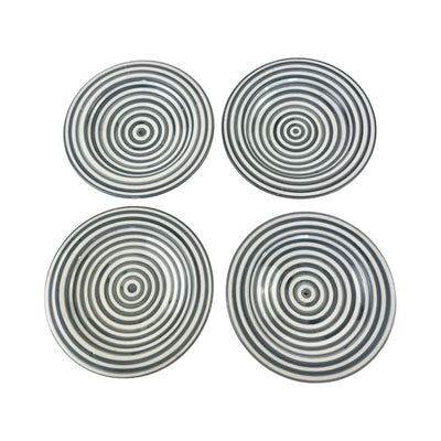 4 beautifully wheel thrown and hand-painted appetizer plates in our classic bullseye pattern to compliment any stylish happy hour...Product Information