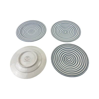 4 beautifully wheel thrown and hand-painted appetizer plates in our classic bullseye pattern to compliment any stylish happy hour...