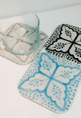 These stylishly hand-painted coasters will add a touch of chic to your night stand or coffee table! Comes in a set of 4 patterns with cork bottoms to protect your table.