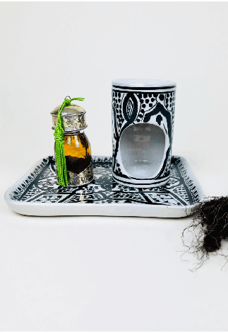 Our pure essential oils come in a small glass bottle with hand hammered nickel detailing and a hand tied tassel.