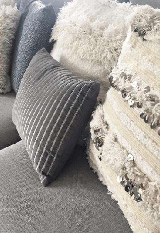 Handira, or Moroccan Wedding Blankets, as they are known outside of Morocco each have a unique story. These blankets (which we also sell as whole blankets) are woven by a girl’s female family members for their wedding day. Each is typically in a cream and beige color scheme accented with silver sequins, making them a beautiful, neutral and textured addition to any decor. We recycle these slightly damaged beauties by having pillow covers handmade from the good parts of the blanket. Each is one of a kind and sizes vary slightly, adding to the handmade and genuine feel they bring to your home.
