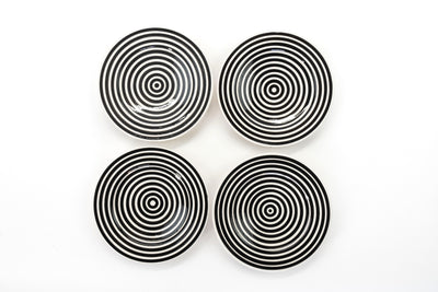 4 beautifully hand-painted appetizer plates to compliment any stylish happy hour in our classic "Bullseye" pattern.