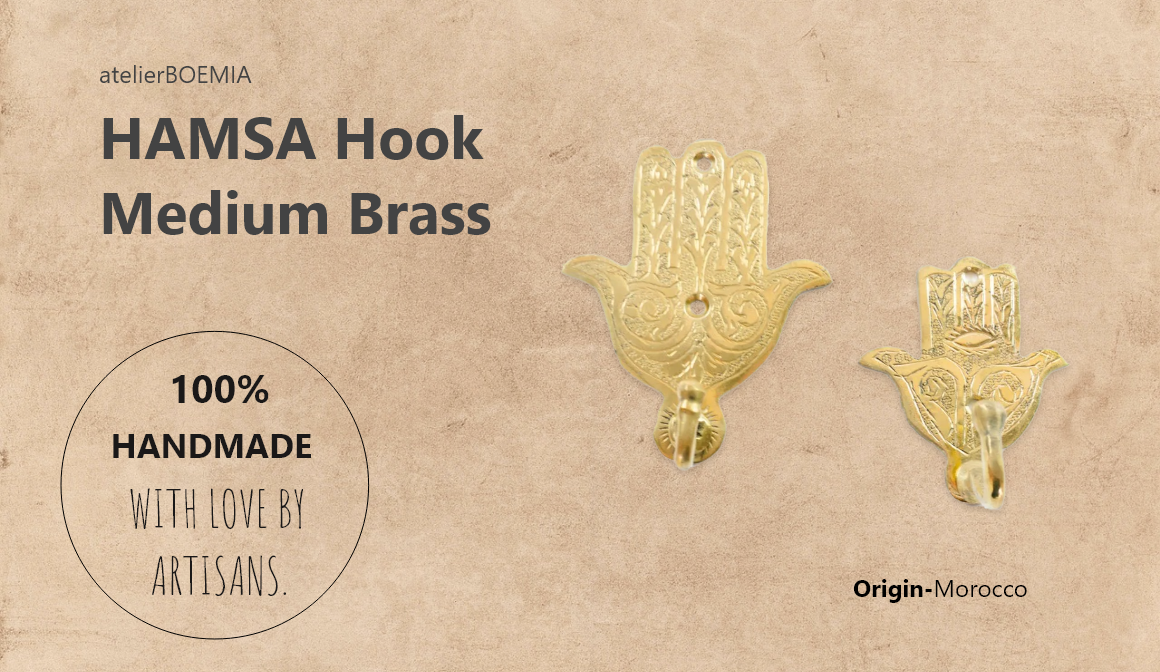 The hand (Hamsa) particularly the open right hand is a sign of protection that also represents blessings, power, strength. Solid Brass and handmade, this hook looks great in a bedroom, bathroom or grouped in 3 or 5 in your entryway (odd numbers of course)!